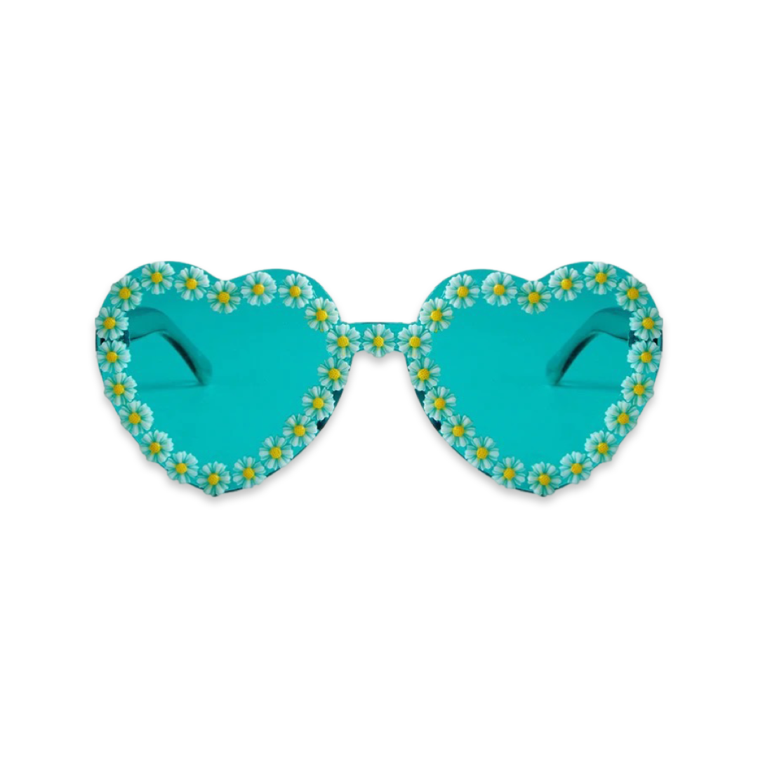 Sunglasses - Heart shaped daisy colour therapy glasses, Blue