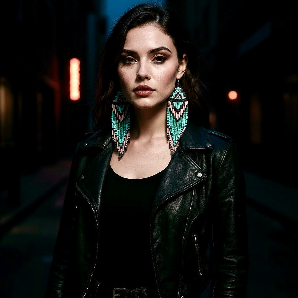 Elevate your accessory collection with these stunning Handmade Beaded Earrings, meticulously crafted for a unique and vibrant look. Featuring an intricate turquoise and pink long beaded tassel fringe, these earrings are designed to make a statement while exuding elegance. The beautiful combination of beads creates a striking pattern that moves gracefully with you, adding a dynamic flair to any outfit.